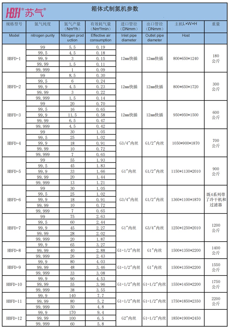 HBFD系列技術指標